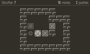 Soko includes 7 sets of levels out of the box. Each of these sets features compact puzzles that will fit nicely on your Playdate's screen, and provide a great range of difficulty for players of any experience from absolute beginner to expert box-pusher.